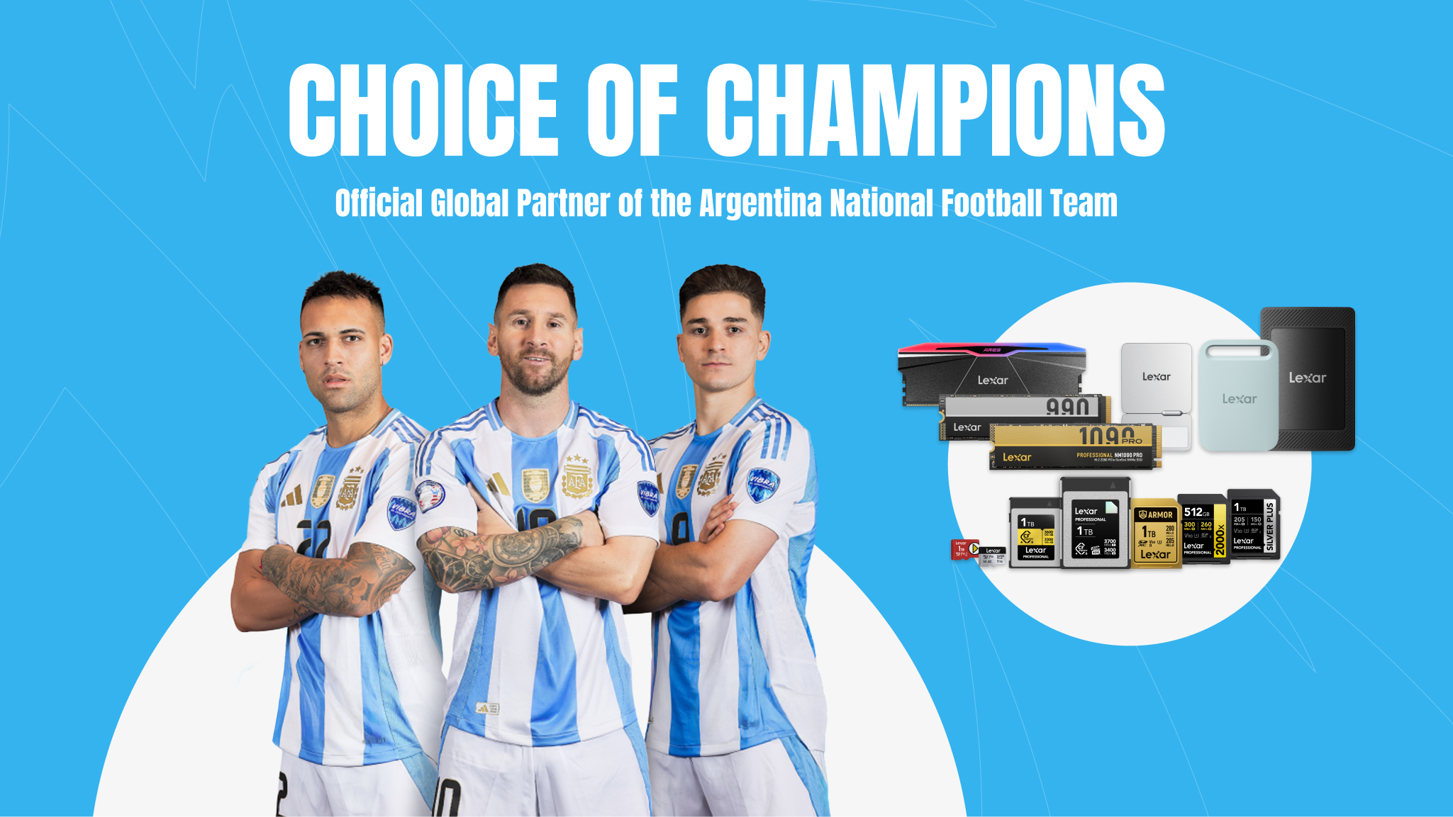 Argentina has rewritten football history with an indomitable spirit on the pitch. Likewise, Lexar pushes technological boundaries with its innovation DNA—merging robust protection and blazing performance through the world’s first metal SD card and the 1TB microSD Express card—to deliver reliable assurance for every moment.